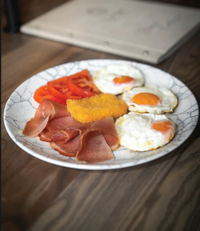 590,003 jaja, pančeta, kulen, sir, green mix, hlebići